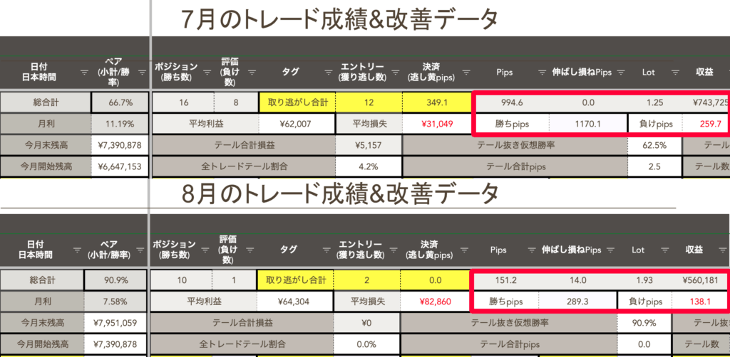 トレードノートもつけ、アウトプットもし、1ヶ月ぐらいで成果が出始めました。